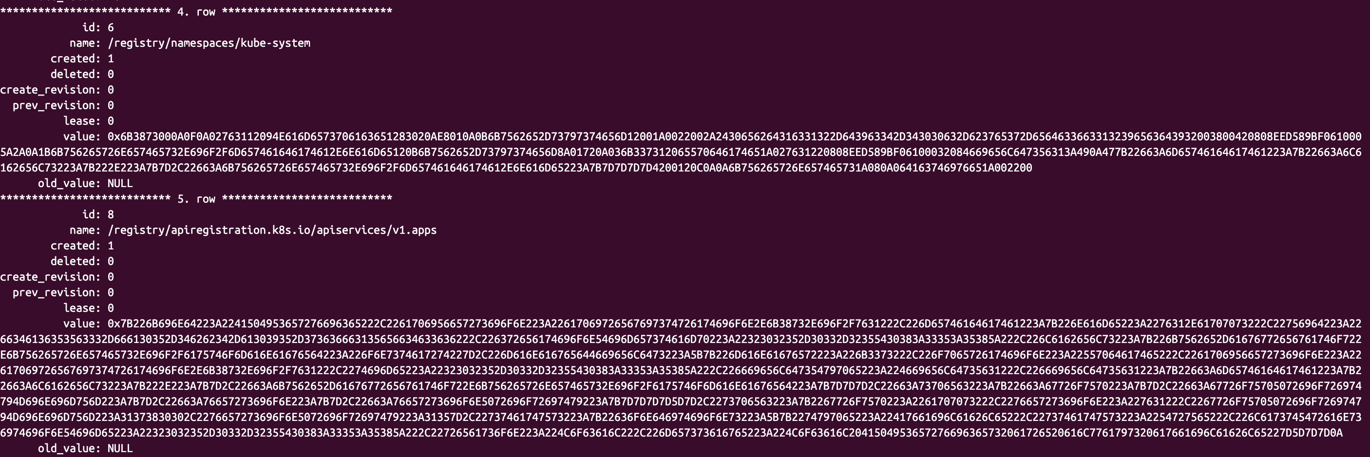 数据库里面存放了原本etcd会存放的信息,例如各个节点的信息。